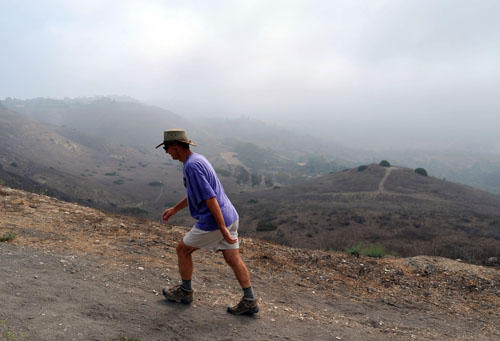 A hiker strolls up the McBride Trail which borders the top of the Filiorum Parcel. The Palos Verdes Peninsula Land Conservancy is finally in position to acquire the last piece that will connect the Peninsula land reserve. (Steve McCrank / Daily Breeze Staff Photographer)
