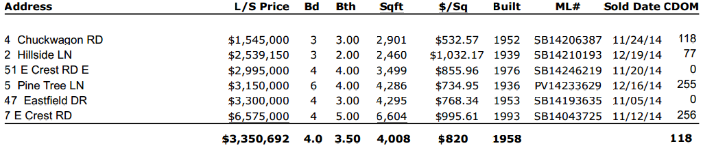 Average List Price at 12/31/2014: $7.5 million