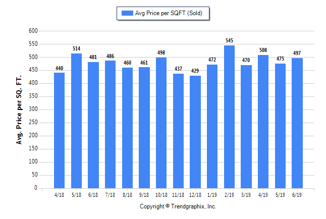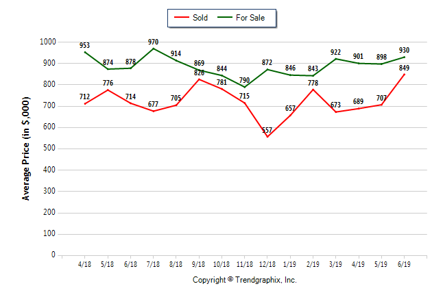 Summary: The number of condos and townhomes listed for sale on the Palos Verdes Peninsula at the end of June is 32% higher than at this time last year and the number of homes sold during the last three months is down 8% compared to the prior year, resulting in unsold inventory of 3 months supply. Prices of $495 per square foot are up approx. 3% compared to the prior year’s quarterly average. Lower priced homes are moving faster than the upper end of the market. Condos and townhomes taking only approx. 1 month to sell.